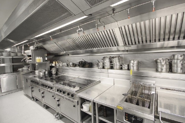 Os tetos são onde muitas das instalações e tubagens de uma cozinha industrial estão alojadas, algumas expostas e algumas escondidas atrás de caibros e vigas do telhado. Qualquer coisa exposta deve ser limpa para eliminar a poeira e a graxa (que contêm bactérias e são um terreno fértil para o mofo). Até mesmo as telhas do teto devem ser limpas para refrescar sua aparência e remover a poeira e a gordura coletadas.
